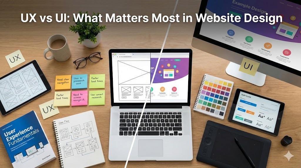 Understanding UX and UI in Website DesignWhy UX Matters More Than UI What Happens When UX Fails?What Happens When UI Fails?How UX and UI Actually Work TogetherExample: E-commerce Product PageExample: Lead Generation Landing PageThe Biggest Mistakes (And You’re Probably Making One)Trap 1: Obsessing Over Visuals While Ignoring UXTrap 2: Neglecting UI Until It Ruins UXHow to Prioritise UX and UI (The Right Sequence)The Bottom Line: UX First, UI Always, Data Above All