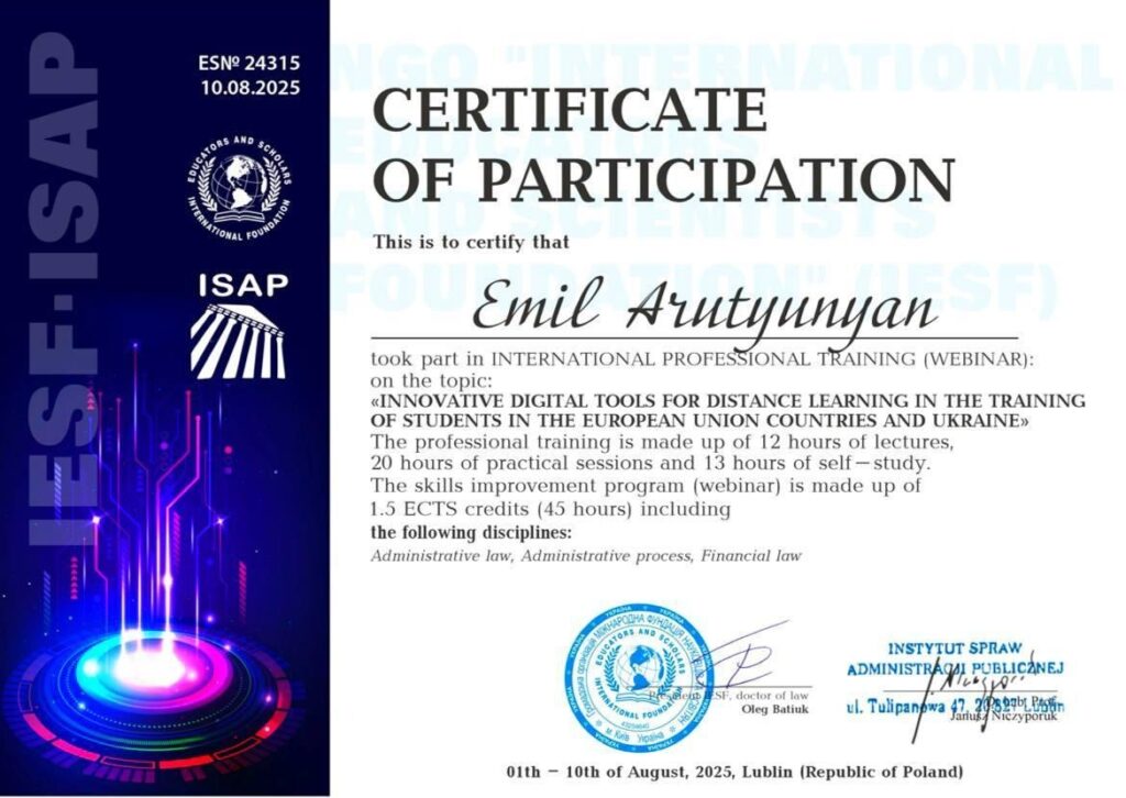 Today, digital technologies are transforming not only business but also education. Online learning has become part of a new reality, where knowledge is no longer confined to the walls of a university. This topic was the focus of an international training program in which the Ukrainian entrepreneur Emil Arutyunyan participated in August 2025.